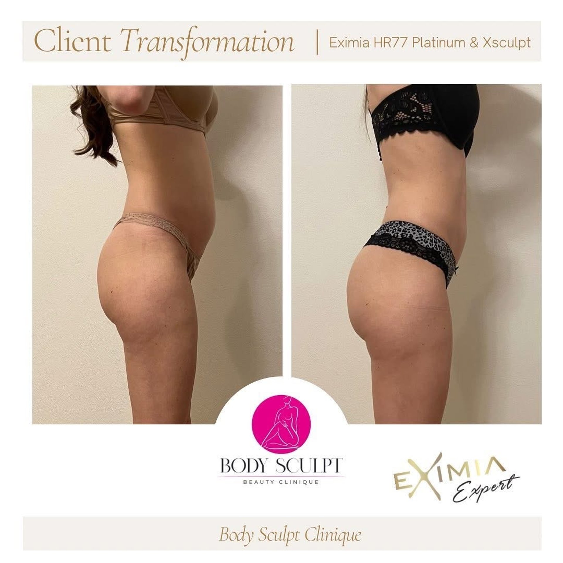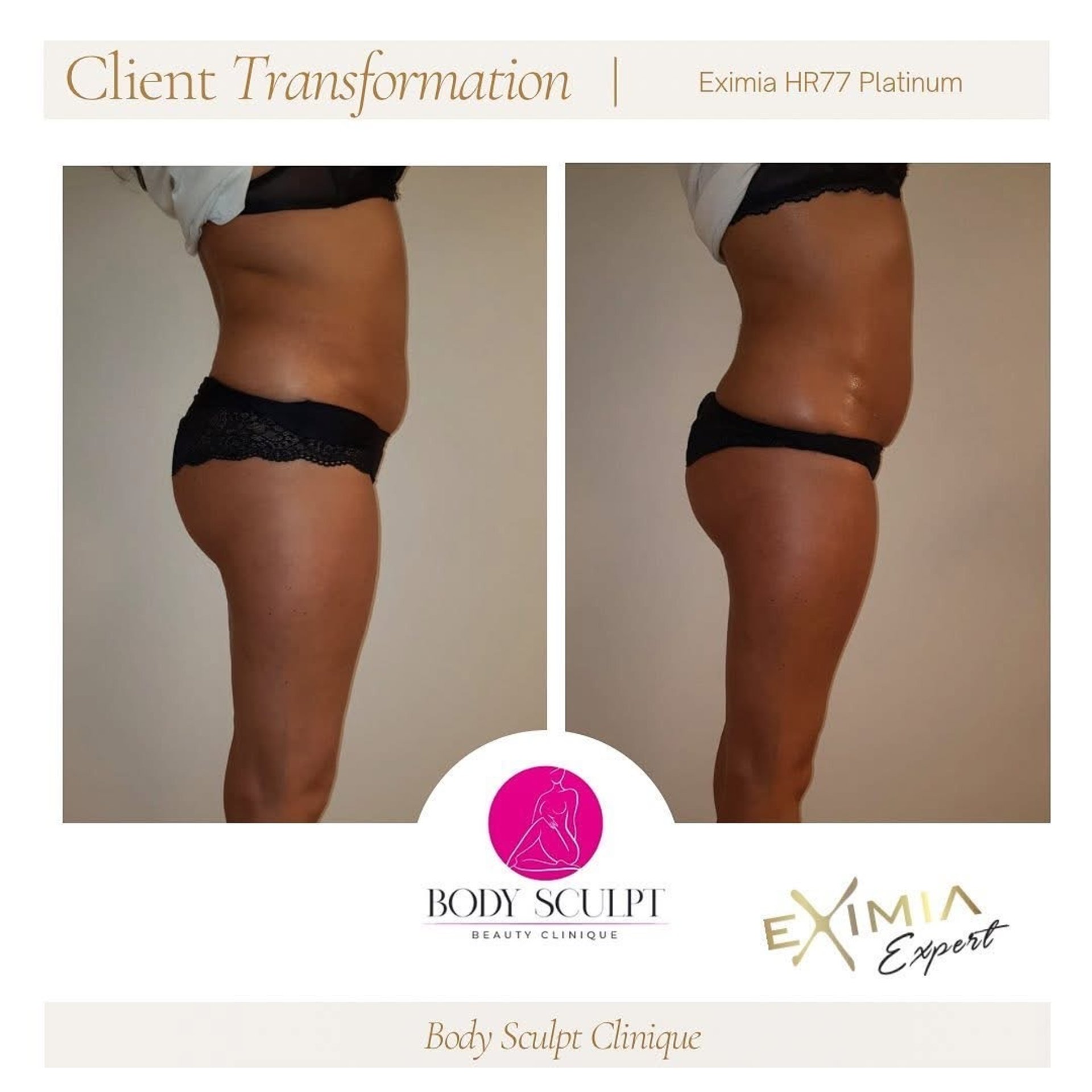 Tratamentul Eximia (HR77 Platinum) oferă rezultate vizibile în termeni de reducere a grăsimii localizate, îmbunătățire a fermității pielii și diminuarea celulitei — adesea încă de după primele ședinte.